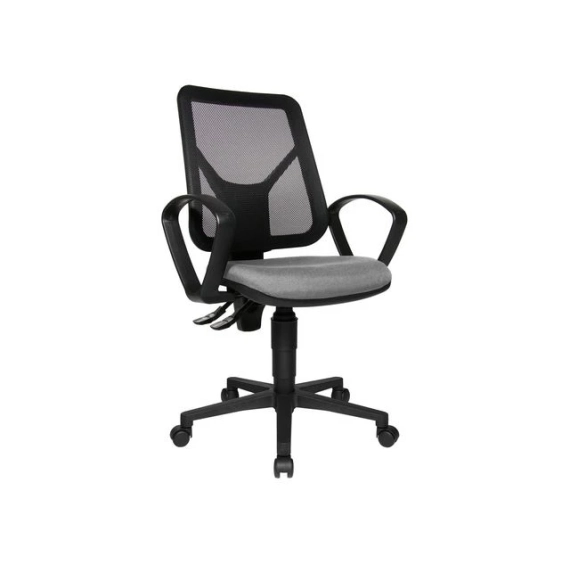 Er en design svingstol med pustende nettrygg og permanent-kontakt-mekanisme for optimal komfort. Den har justerbar ryggstøttehøyde og en ryggstøtte med pustende nettoverflate som sikrer god ventilasjon under bruk. Stolen har også et behagelig støpt sete og inkluderer faste ringarmstøtter for ekstra støtte og komfort. - Setehøyde: 400-520mm - Setebredde: 460mm - Setedybde: 460mm - Rygghøyde: 570-630mm - Vipp: Ja - Justerbar mottrykk: Ja - Korsryggstøtte: Nei - Justerbar korsryggstøtte: - - Nakkestøtte: Nei - Justerbar nakkestøtte: - - Armlene: Ja - Justerbare armlener: Nei - Maksimal garantert vektkapasitet: 110kg - Maks anbefalt brukstid: 8 timer - Materiale: Polyamid base, Polyester sete og rygg - Totale dimensjoner (HxBxD): 330x800x600mm - Farge: Sort/Grå - Garanti: 3 år
