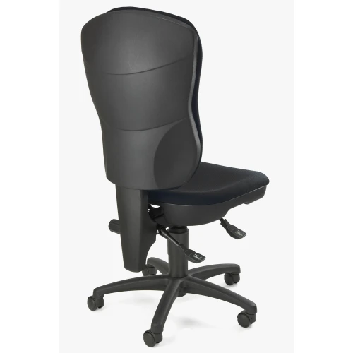 Den ekstra høye formstøpte ryggen og det store formstøpte setet gir en behagelig sitteposisjon. Med en høydejusterbar rygg kan den tiltes i en rekke ulike posisjoner.