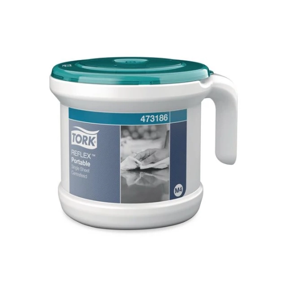 Tork Reflex bærbar senterrull dispensersystem med utmating av ett tørk om gangen er den ideelle løsningen for å tørke hender og overflater i profesjonelle miljøer. Dispenseren er enkel å bruke, hygienisk, robust og reduserer forbruket med opptil 37% sammenlignet med Tork senterrull-systemet. Den passer perfekt for bruk innen matproduksjon, for rengjøringsbyråer og mobile områder. Det slitesterke håndtaket gjør at dispenseren er enkel å bære rundt eller feste til en rengjøringsvogn slik at det alltid er papir tilgjengelig. En 2-lags hvit Reflex senterrull er inkludert. Reduserer risiko for krysskontaminering fordi brukerne kun berører det de bruker Robust design som er laget for å takle de tøffeste miljøer Fullstendig lukket rull - beskytter den mot sprut og skitt Refill med sluttindikator betyr at du aldri blir stående uten papir Størrelse: H22,2xB23,6xD27,8cm