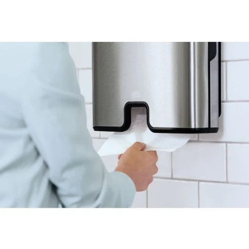 Denne dispenseren har rette linjer, glatte overflater og beskyttelse mot fingeravtrykk, noe som gjør at denne ser bra ut til enhver tid. Ved fylle dispenseren med et premium tørkepapir vil man kunne tilby gjestene en god opplevelse. Med dispensering av et og et ark av gangen kan man redusere forbruket og sikre optimal hygiene. Enkel å fylle på, og det praktiske inspeksjonsvinduet sørger for man kan følge med på forbruket.