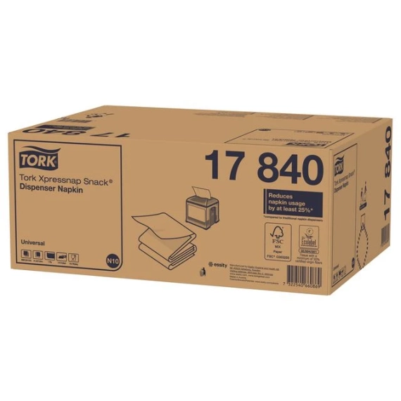 Prøv denne ultramyke engangsservietten, som er laget av høykvalitetsfibre som er spesialutviklet for Tork Xpressnap-dispenseren. Dette dispensersystemet leverer disse brettede serviettene én om gangen, og gir dermed mindre forbruk og avfall. De små, firkantede serviettene er flotte til bruk når du er på farten, og har en ideell størrelse for næringsmiddelvirksomheter som ønsker kvalitet til en rimelig pris.