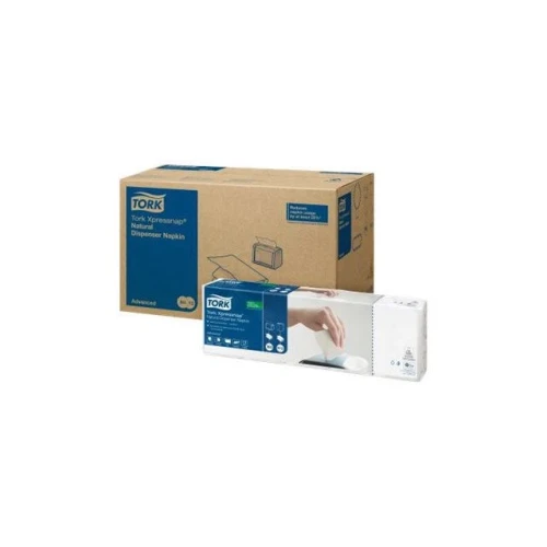 Tork Xpressnap® Natur 1-lags Dispenserservietter. Tork Xpressnap® Serviettdispensere er perfekte for selvbetjeningsrestauranter. Systemet reduserer serviettforbruket med 25 % sammenlignet med tradisjonelle serviettdispensere. - Komposterbar (EN13432) og laget av 100 % resirkulerte fibre. - Ingen bleking eller tilførte fargestoffer gir servietten en naturlig farge - Er forhåndstrykt med teksten “100 % resirkulert“ for å gi servietten et tydelig miljøbudskap - Større serviett (når brettet ut) passer perfekt til alle spiseanledninger - Unik pakkeløsning der buntene er beskyttet av en plastpose for forbedret hygiene og håndtering - System N4: Tork Xpressnap® Serviettdispenser System - Brettet (L x B): 10,7 x 16,5 cm - Ubrettet (L x B): 21,3 x 33 cm - Farge: naturfarge.