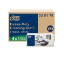 Allsidige Tork Rengjøringsklut Sterk er høyabsorberende, tykk og svært slitesterk. Den tåler hard skrubbing uten å gå i stykker. Den fungerer med de fleste løsemidler, og fjerner olje, fett, vann og vanskelige flekker raskt og effektivt, mens hendene beskyttes mot varme og metallspon. - Kluten passer i Tork Toppholder som beskytter refillene mot skitt, og tilbyr utmating av en - klut av gangen for å redusere forbruket - System: W4: System for top-pak - Ubrettet: B35,5cmxL41,5 cm - Brettet: B35,5 cmxL10,8cm - Farge: Hvit