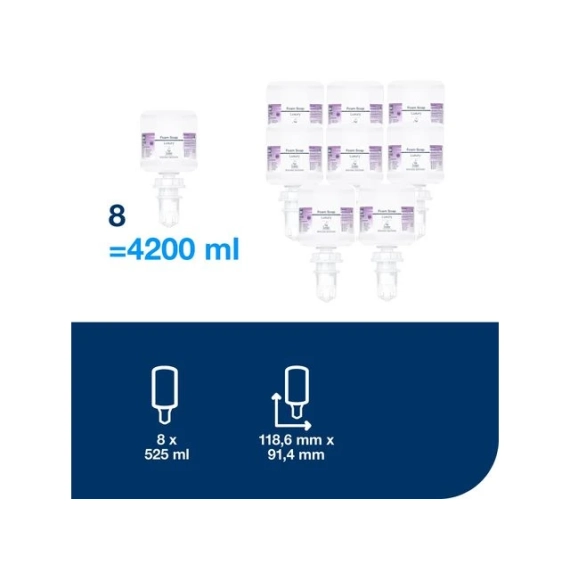 Skjem bort gjestene dine med Tork Luksus skumsåpe. En luksuriøs såpe med duft av magnolia som inneholder fuktighetsgivende og lipidpåfyllende ingredienser for en herlig, kremet håndvaskopplevelse. Passer i Tork håndhygiene dispenser mini, som er sertifisert «Easy to use» og sørger for god håndhygiene for alle brukere. - Beriket av naturlig ekstrakt fra magnolia for en myk håndvask med kremet konsistens - 94% av ingrediensene har naturlig opprinnelse - Unik og elegant duft av sitrus med en sofistikert miks av magnolia, orkidé og fresia for en avslappende følelse - Dermatologisk testet - Hudvennlig pH-verdi - Reduserer tidsbruken for renholderne - Den fabrikkforseglede flasken kommer med en ny pumpe i hver refill, noe som bidrar til å redusere kontaminering og holder produktet trygt hele veien til brukeren - Volum: 525ml - Farge: Transparent