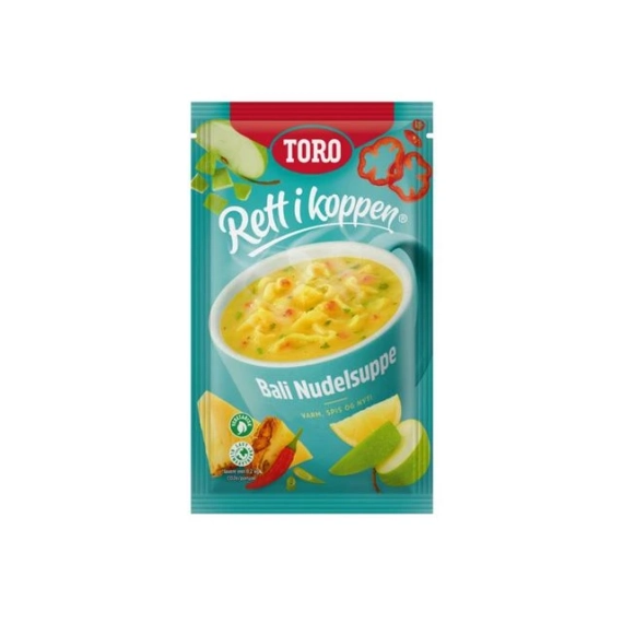 TORO Rett i koppen Bali nudelsuppe gir deg en varmende pause. Bali nudelsuppe passer perfekt når man er litt sulten og vil ha noe raskt og enkelt, enten det er hjemme eller på farten. Tilsett varmt vann, spis og nyt! - Vekt: 40g.