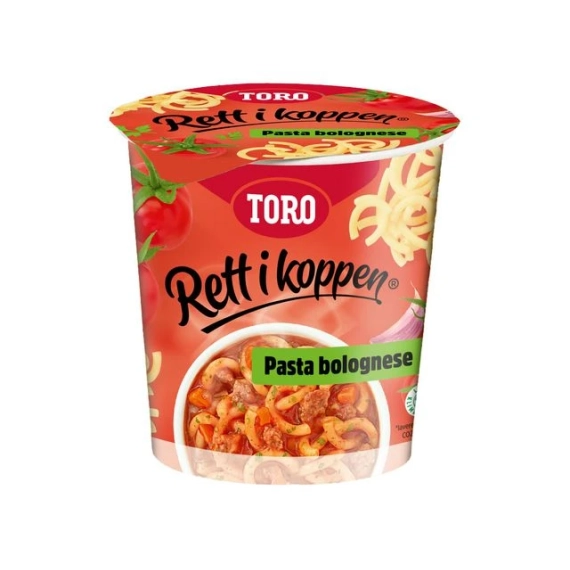 TORO Rett i koppen Pasta Bolognese gir deg en varmende pause. TORO Rett i koppen Pasta Bolognese passer perfekt når man vil ha noe raskt og enkelt, enten det er på jobb eller på farten. Enkel tilberedning: Åpne lokket halvveis og fyll opp med kokende vann til merket linje. Rør godt. Legg på lokket igjen og vent 5 minutter. Fjerne hele lokket og rør igjen kos deg! - Allergener: Gluten (Durumhvete) og selleri - Produktsammensetningen kan endres. Les derfor alltid ingredienslisten på emballasjen til produktet - Nettovekt: 65g
