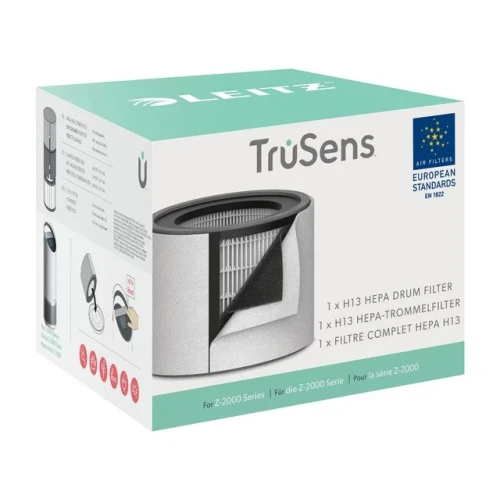 Alt-i-ett filtersystem kombinerer et H13 HEPA-filter med aktivt kullfilter og et separat vaskbart forfilter. Dette kombinasjonsfilteret er konstruert for å fange opp ultrafine luftbårne partikler, inkludert bakterier, virus, støv, allergener, flass fra kjæledyr, flyktige organiske forbindelser (VOC) og luktende gasser. 360 grader H13 HEPA-filtrering trekker inn luft fra alle retninger og samler opp forurensninger fra hele rommet som kan påvirke allergier og andre symptomer. - Vaskbart forfilter - Karbonfilter fanger opp lukt og visse gasser. Byttes hver 3. måned - Filterenheten oppfyller kravene til H13 HEPA i samsvar med EN 1822-1:2019 & EN ISO 29463-5:2018 - Indikatorlampe viser når filtre må skiftes. - Kompatibel med Leitz TruSens Z-2000 Medium luftrensere