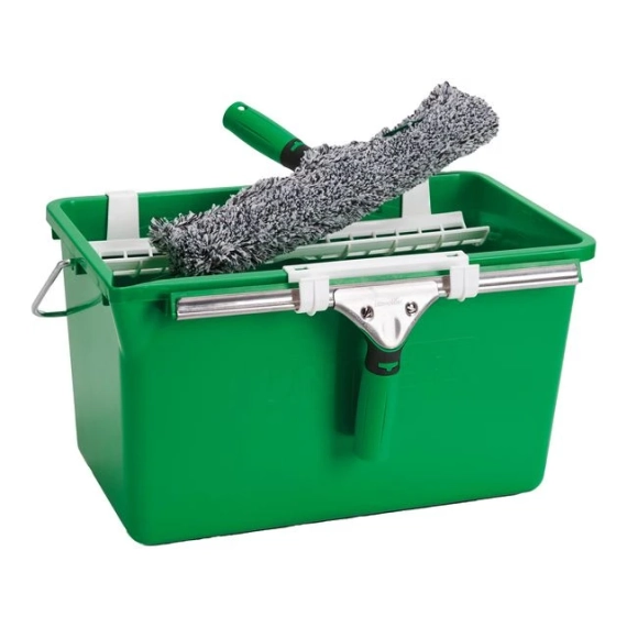 Unger Vindusvaskesett er et komplett sett med 2 naler, vaskepels og bøtte. Det du trenger for å kunne utføre effektivt renhold på vinduer. - Kompatibelt med Unger telskopstenger - 35cm arbeidsbredde - 18L bøtte