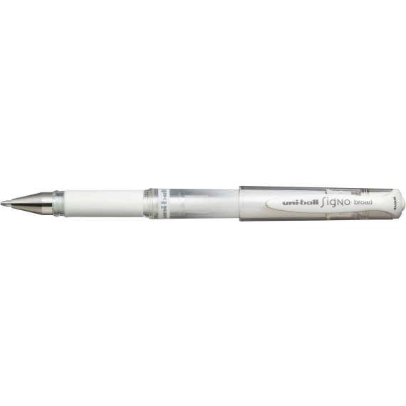 Den brede gelpennen Uni-Ball Signo med jevnt blekk i skarpe farger er perfekt for å legge til et personlig preg på kunst- og håndverksprosjekter. Pennen er lett og har en gjennomsiktig kropp med gummigrep for komfort og kontroll når du skriver. Beskyttelseshetten med fargede lommeklips er både stilfull og forhindrer at blekket tørker ut. Den brede spissen gjør at blekket kan flyte jevnt og fordele seg jevnt på papiret for en jevn skriveopplevelse hvor spissen ikke hopper.