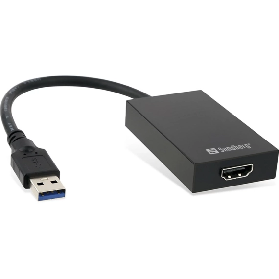 Med Sandberg USB 3.0 til HDMI Converter kan du bruke USB-A-porten din til å koble til en ekstra skjerm, TV eller projektor til enheten din. Pakkedetaljer1 Sandberg USB 3.0 til HDMI Converter1 guide