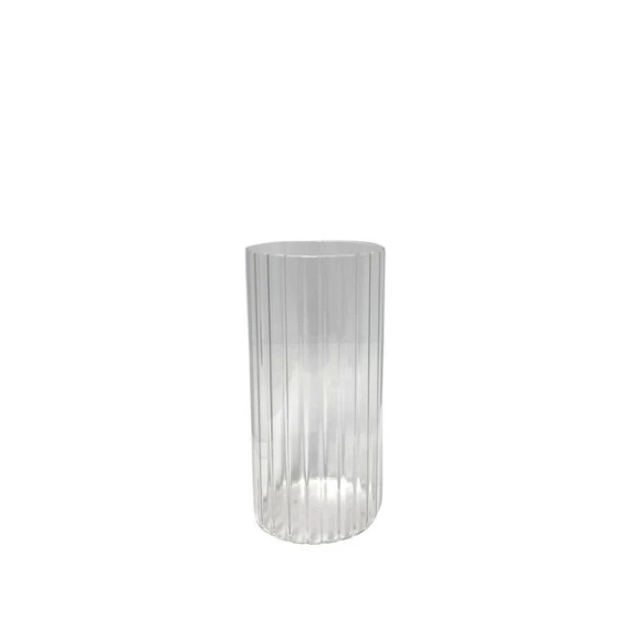 Skap et elegant uttrykk! RILLE er en sylinderformet vase i glass med dekorativ rillet struktur som fanger lyset og gir borddekkingen det lille ekstra. Perfekt til alt fra store buketter til enkle stilkblomster. Vasen tilfører karakter, uansett om den brukes alene eller som en del av en dekorativ oppstilling. - Elegant og dekorativ vase - Materiale: Glass - Mål (HxØ): 25x12cm - Farge: Klar -