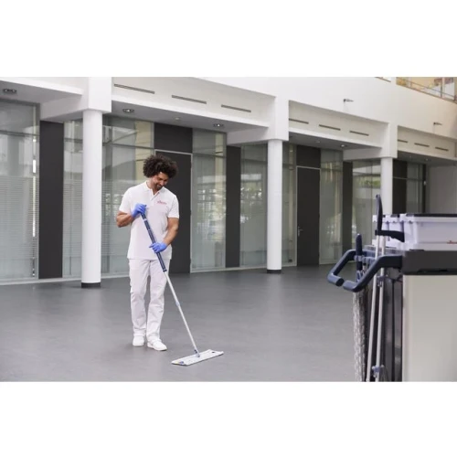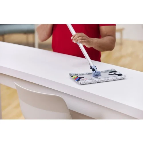En ekstra bred borrelåsmopp I mikrofiber. Fjerner alle typer smuss på slette og harde gulv. Passer likebra på sykehus, som til kontor, skoler, butikker på restauranter. Allsidig: Passer for forseglede/glatt og strukturerte vinylgulv Forbedret dekning: XL-moppen dekker effektivt større områder Presis rengjøring: Tar seg av hjørner og listverk Mikrofibermoppen glir jevnt og skrubbeøyer retter seg mot vanskelig smuss Produsert av 100% polyester hvor mer enn 35% er resirkulert plast Høy holdbarhet, maskinvaskbar over 500 ganger Anbefalt temperatur: 60°C. Maks: 95°C. Unngå sterkt alkaliske vaskemidler, bleke- og skyllemiddel Mål: 44,5x15 (40cm)