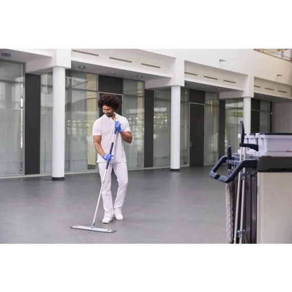 Effektiv borrelåsmopp i mikrofiber, med garnfrynser rundt kanten. Fjerner alle typer smuss på slette og harde gulv. Passer like bra på sykehus, som til kontor, skoler, butikker og restauranter. Premiummopp med effektiv 4D-struktur. Unik skåret mikrofiber med diagonale skrubbesoner og vannkanaler for rengjøring i dybden, samt garnfrynser for fjerning av løse partikler. Lav friksjon på grunn av skrubbesonene som hjelper til å løfte moppen. - Produsert av 100% polypropylen med opp til 35% resirukulert plast - Slitesterk: Tester viser at moppen tåler mer enn 500 vaskesykluser - Anbefalt temperatur: 60°C. Maks: 95°C. Unngå sterkt alkaliske vaskemidler, bleke- og skyllemiddel - Mål: 66,5x17,5 (60cm)