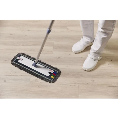 Effektiv borrelåsmopp i mikrofiber, med garnfrynser rundt kanten. Fjerner alle typer smuss på slette og harde gulv. Passer like bra på sykehus, som til kontor, skoler, butikker og restauranter. Premiummopp med effektiv 4D-struktur. Unik skåret mikrofiber med diagonale skrubbesoner og vannkanaler for rengjøring i dybden, samt garnfrynser for fjerning av løse partikler. Lav friksjon på grunn av skrubbesonene som hjelper til å løfte moppen. - Produsert av 100% polypropylen med opp til 35% resirukulert plast - Slitesterk: Tester viser at moppen tåler mer enn 500 vaskesykluser - Anbefalt temperatur: 60°C. Maks: 95°C. Unngå sterkt alkaliske vaskemidler, bleke- og skyllemiddel - Mål: 66,5x17,5 (60cm)
