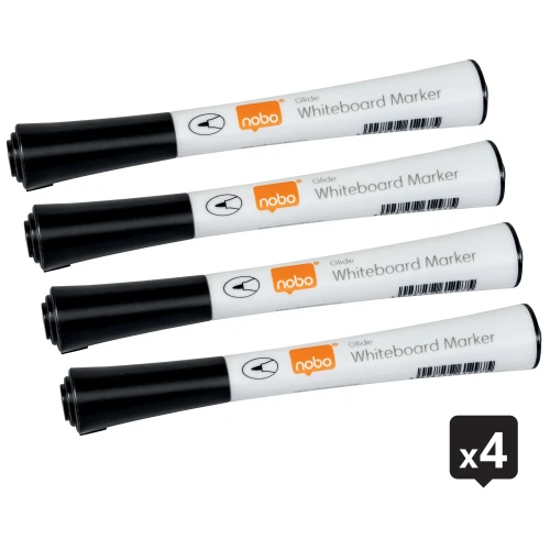 Disse ikke-permanente whiteboardpennene er svært allsidige for bruk på ikke-porøse overflater som tavler, glass og emalje. De tørker raskt og er lukter lite, og kan enkelt fjernes ved hjelp av en tørr klut. Tilgjengelig i et utvalg av farger for å møte alle dine presentasjonsbehov; ideell for skoler, kontorer og hjemme. Pakke med 4 penner med en fin, rund tupp på 1 mm for konsistente glatte linjer. Tørkes av tavlen når blekket er tørt. Brukes med en Nobo-tavle for optimal ytelse. - Whiteboardpenn med svak lukt og flotte, klare farger som står frem på tavlen - Egnet for bruk på de fleste ikke-porøse overflater inkludert glass, emaljert og lakkerte whiteboardtavler - 1 mm rund tupp - Pakning med 4 penner - Blekket tørkes av tavlen når det er tørt