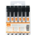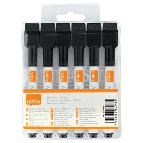 Nobo Dry-Erase whiteboardpenn har en svart fin spiss. De er luktsvake og har giftfritt blekk, om gjør dem perfekte til bruk i alle miljøer, spesielt hjemme eller på skolen. De har også en magnetisk hette med pussefunksjon slik at du kan holde dem festet til din Rexel magnetiske whiteboard, og samtidig kan du pusse tavlen når du er ferdig uten å måtte kjøpe en separat pussekloss. - Lav lukt og ikke giftig blekk - Sort blekk - Tynn tupp - Pakke med 6 stk.