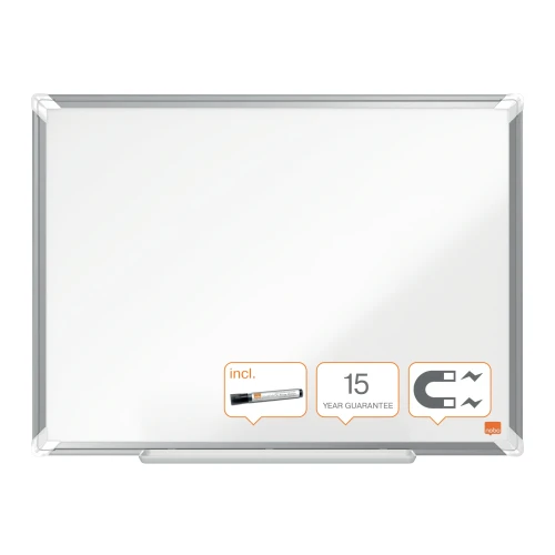Lakkert, magnetisk whiteboardtavle med moderne og stilig ramme i aluminium. Henges opp på veggen gjennom hjørnemontering. - Inkludert en romslig pennehylle for oppbevaring av penner, magneter og pussekloss - Den lakkerte overflaten er enkel å tørke av ved frekvent bruk - Størrelse: 60x45cm - Garanti: 15 år