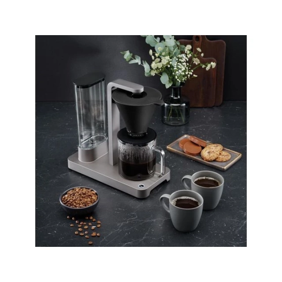 Kaffetrakteren Performance fra Wilfa sikrer maksimale smaker og aromaer fra kaffen ved at den traktes med friskt vann og ved perfekt temperatur – hver gang. Det er flere suksessfaktorer som må til for å brygge perfekt kaffe, og riktig temperatur er én av dem. Kaffetrakteren Performance brygger kaffen på de mest optimale vanntemperaturene for den beste kaffesmaken, gjennom hele prosessen. Performance holder mellom 92 og 96 grader fra første til siste dråpe. Ferskt vann er en av de viktigste ingrediensene i god kaffe. Takket være Wilfas unike vannpumpeteknologi tømmes Performance Compact helt for vann ved hver brygging og du trakter neste kanne kun på friskt vann. Vannbeholderen er avtagbar. Det gjør det enkelt for deg å fylle på frisk vann når du skal lage kaffe, samtidig som vannet alltid vil være rent. På vanntanken er det måleindikator, hvor det står markert hvor mye vann som trengs i forhold til gram kaffe. Med det unike spredningshodet som sprer vannet jevnt utover kaffen, vil alle smaksstoffene fra din kaffe bli fullt utnyttet. Trakteren er stillegående. Dobbel vegg på filterholderen minimerer varmetap. Den har justerbar dryppstopp og flow control, slik at du slik at du kan brygge like god kaffe hver gang, om det så er én eller ti kopper. Varmeplaten har Auto-off etter 40 minutter. Wilfa Performance ble kåret til årets kjøkkenprodukt 2020/21 av Elektronikkbransjen. - Med riktig temperatur og alltid friskt vann sikres den beste kaffesmaken - Kapasitet: 1,25 liter - 1800 watt - Avtagbar vanntank med doseringsanbefaling - Manuel justerbar dryppstopp - Dryppfri glasskanne inkludert - Farge: Titanium