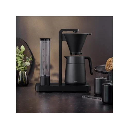 Performance Thermo er utviklet for deg som vil nyte førsteklasses kaffe lenge. I stilfullt nordisk design brygger trakteren kaffe av høy kvalitet direkte i kannen laget av rustfritt stål, som holder kaffen varm. Performance Thermo leveres med to lokk, ett til brygging for å minimere varmetapet og ett til servering for å holde kaffen varm lenger. Det er flere suksessfaktorer som må til for å brygge perfekt kaffe, og riktig temperatur er én av dem. Kaffetrakteren Performance brygger kaffen på de mest optimale vanntemperaturene for den beste kaffesmaken, gjennom hele prosessen. Performance holder mellom 92 og 96 grader fra første til siste dråpe. Ferskt vann er en av de viktigste ingrediensene i god kaffe. Takket være Wilfas unike vannpumpeteknologi tømmes Performance Compact helt for vann ved hver brygging og du trakter neste kanne kun på friskt vann. Vannbeholderen er avtagbar. Det gjør det enkelt for deg å fylle på frisk vann når du skal lage kaffe, samtidig som vannet alltid vil være rent. Med det unike spredningshodet som sprer vannet jevnt utover kaffen, vil alle smaksstoffene fra din kaffe bli fullt utnyttet. Filterholder med dobbel vegg minimerer varmetap. Trakteren har justerbar dryppstopp og flow control, slik at du slik at du kan brygge like god kaffe hver gang, om det så er én eller ti kopper. Varmeplaten har Auto-off etter 40 minutter. Kaffetrakteren minner deg på når det er tid for rengjøring. Når lyset på start/stopp-knappen begynner å pulsere sakte, indikerer trakteren at rengjøring og avkalking anbefales. - Med riktig temperatur og alltid friskt vann sikres den beste kaffesmaken - Kapasitet: 1,25 liter - 1800 watt - Avtagbar vanntank med doseringsanbefaling - Manuel justerbar dryppstopp - Thermokanne inkludert - Farge: Sort - Designet og utviklet i Norge