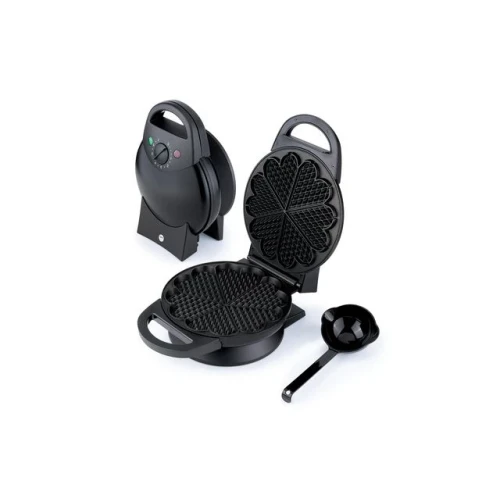 Vaffeljern med kraftig varmeelement på 1400W gir effektiv og jevn stekning. Tykt støpejern med egenutviklede koniske plater for perfekt resultat og jevn stekte vafler. Home vaffeljern har lang levetid og bedre slippevne takket være dobbelt slippbelegg. - Vaffeljern gir ekstra store vaffelplater med 6 store og dype hjerter. Perfekt for den som liker brettede plater - Luftspalter slipper ut fuktig damp og sørger for at vaflene blir stekt, og ikke kokt - Kompromissløs design: Med termostat, effektiv oppsamlingskant, gummiføtter, håndbeskyttelse mot damp og egen øse for perfekt mengde røre sier det seg selv: Dette er et vaffeljern langt utenom det vanlige - 1 400w, 23 cm i diam. kon innvendig - Reg. termostat - Signal lys