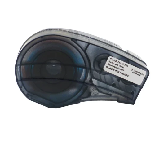 Finn Yaha Label Tape Sort på Hvit 19.1mm x 4.27m, perfekt for presis merking, erstatter Brady M21-750-427. Se kompatible modeller på vår side.