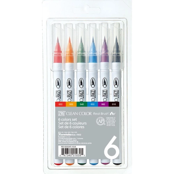 ZIG Akvarellpenn Clean Color Real Brush 6-sett