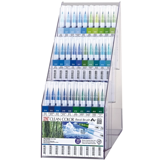 Veldig behagelig akvarellpenn med ekte penselspiss. Fås i 180 forskjellige farger. Gode akvarellegenskaper gir fine gradvise fargeoverganger. Passer til skisser, serietegninger og illustrasjoner. Brukes med ZIG Blender og ZIG BrushH2o.
