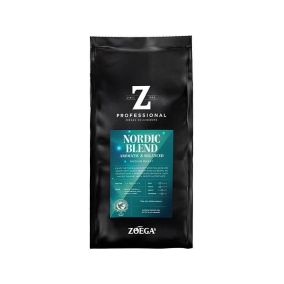 ZOEGAS Nordic skånsomt mellombrente bønner. Hele bønner. Mild aromatisk og søt karakter med toner av karamell. - Myk ettersmak - 100 % høytvoksende arabicabønner fra Brasil, Sentral- og Latin-Amerika, Øst-Afrika og Kina - Blandet, brent og koppet i Helsingborg i Sverige - Vekt: 8x750g.
